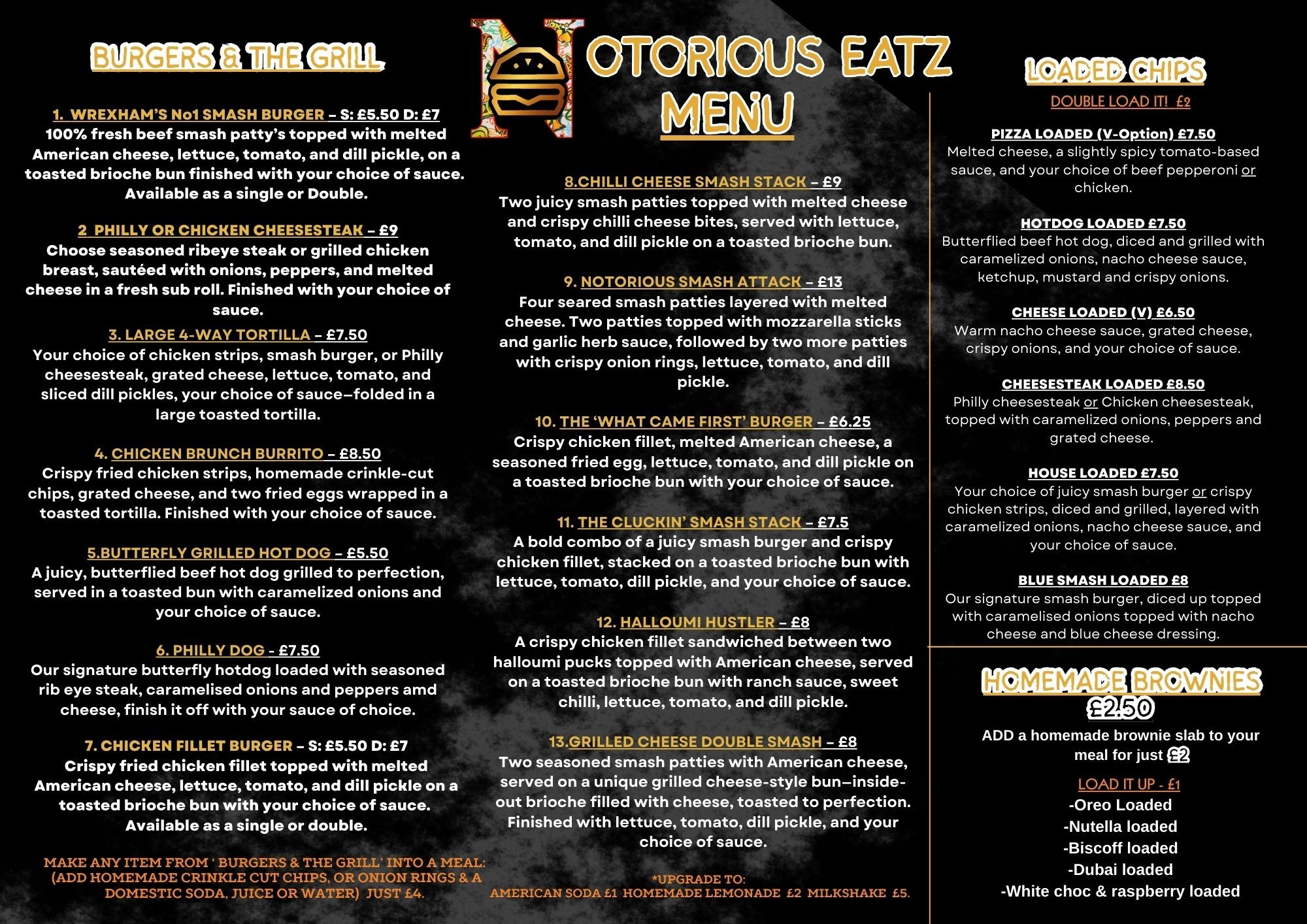 Philly Cheese Loaded: Our seasoned steak chopped and grilled to perfection with caramelised onions and peppers layered onto our homemade crinkle chips and smothered in warm nacho cheese saiuce.
